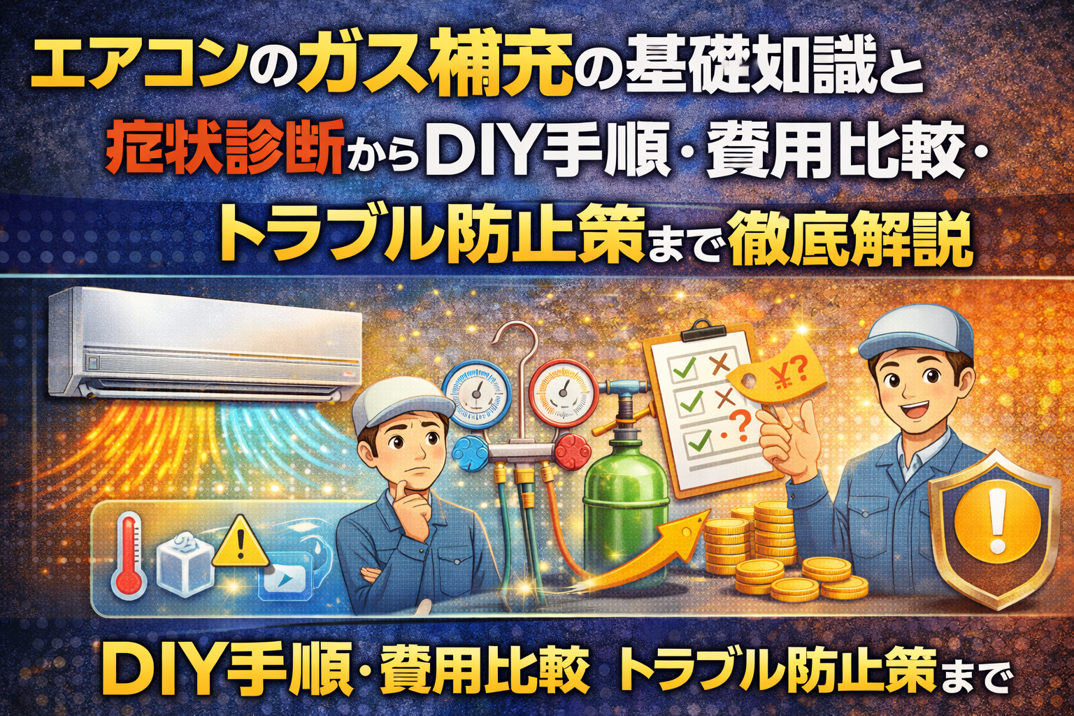 DIYの注意点として、異なる冷媒ガスの混用は絶対に避け、機種ごとの指定冷媒を必ず使用してください。