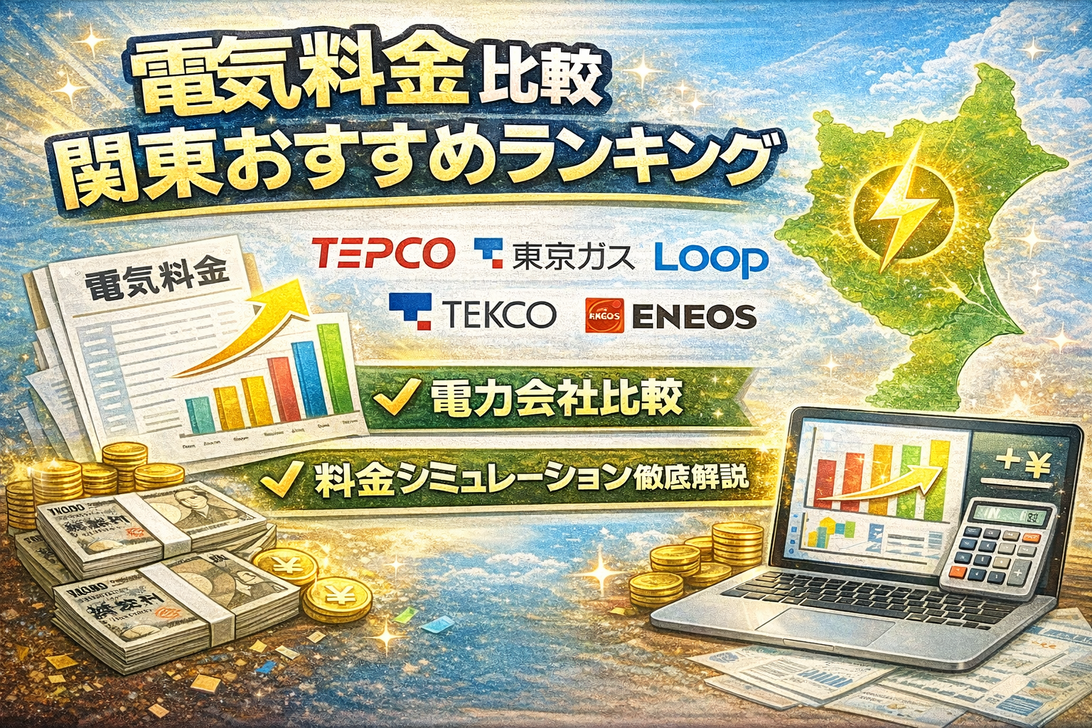 「関東エリアの電気料金、毎月の請求額に不安や疑問を感じていませんか?特に【2024年~2026年】は、燃料費調整額や再エネ賦課金の高騰により、東京電力EPの標準家庭(30A・月260kWh)の月額は【7,126円】から【8,450円】へと約18%アップしました。さらに、各社の料金単価やプラン体系も複雑化し、『どの会社を選べば本当に安くなるの?』『比較しても違いが分かりにくい…』と感じる方が増えています。