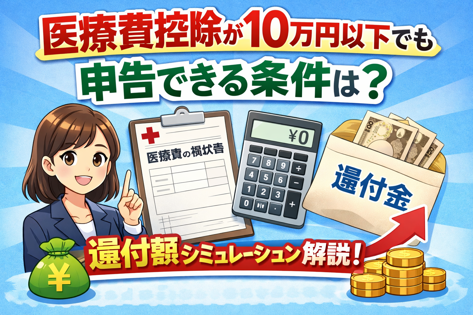 医療費控除が10万円以下でも申告できる条件と還付額シミュレーション解説