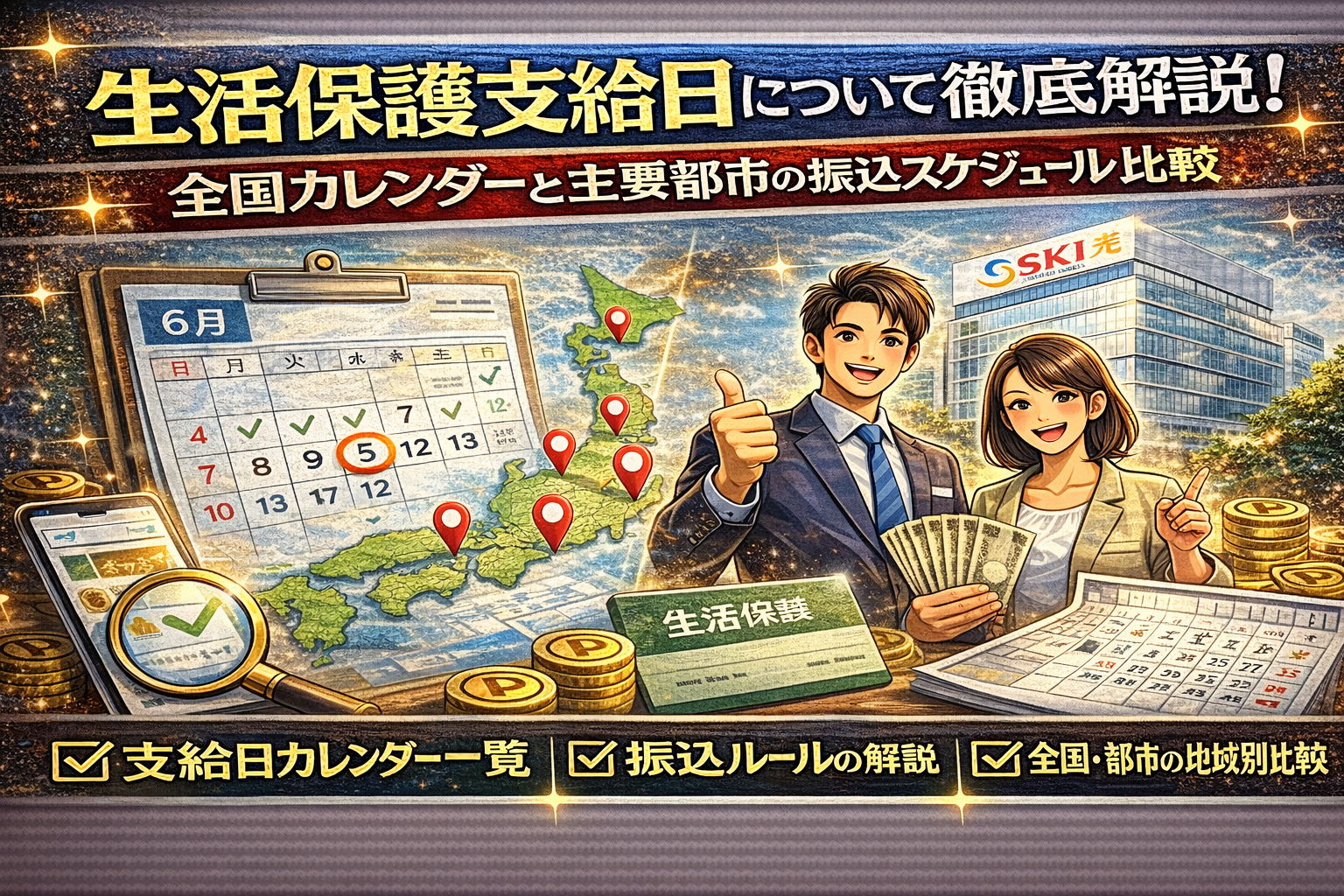 【2026年版】では、全国の標準スケジュールだけでなく、東京23区や大阪市など主要都市の支給日カレンダーや、1月・5月・年末年始の特例日程、災害時や遅延発生時の対応パターンまで実際の自治体発表データや福祉事務所の運用事例にもとづき徹底解説します。