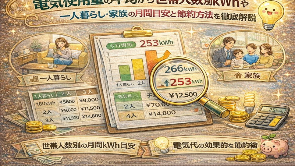 「自分の家庭の電気使用量は平均と比べて多いのか、それとも少ないのか――気になったことはありませんか?実は、日本全国の一般家庭では【月間約360kWh】が標準的な電気使用量とされています。特に一人暮らしの場合は【220~280kWh】、4人家...